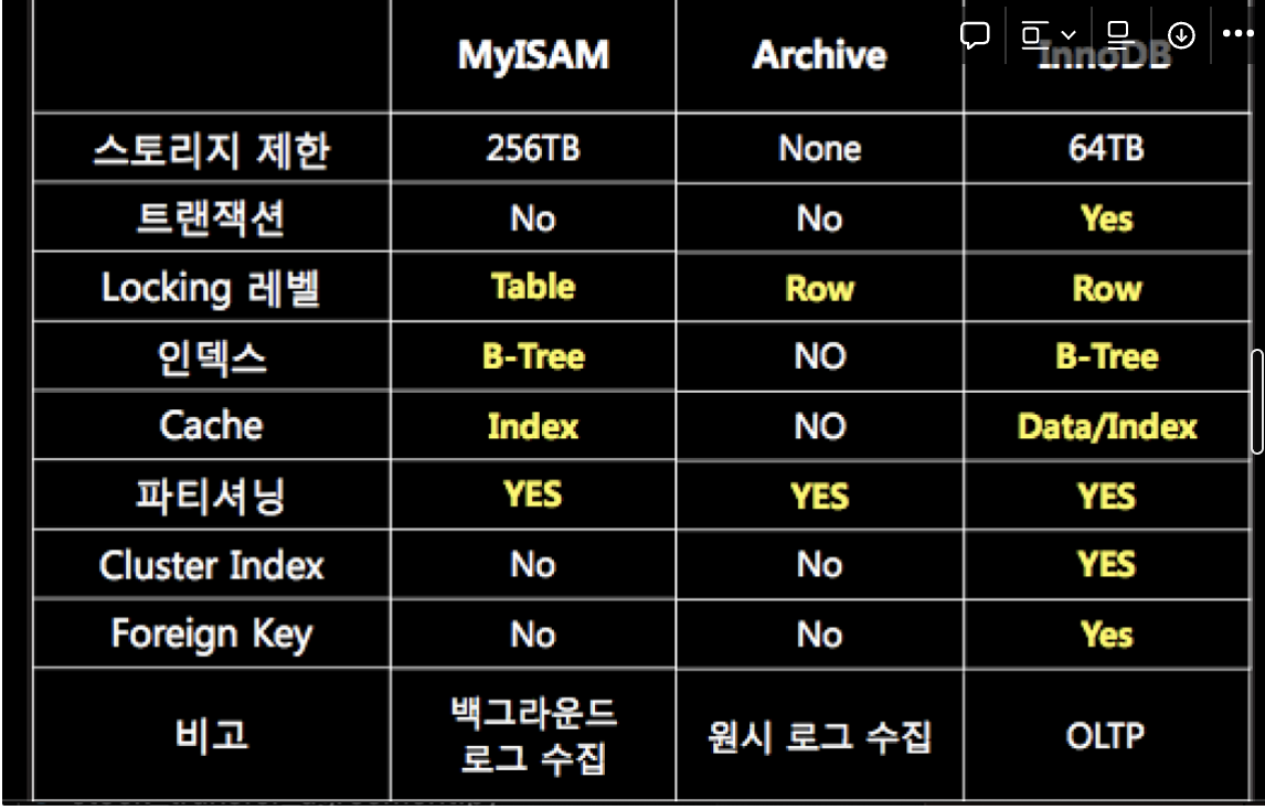 다양한 스토리지 엔진들이 있음